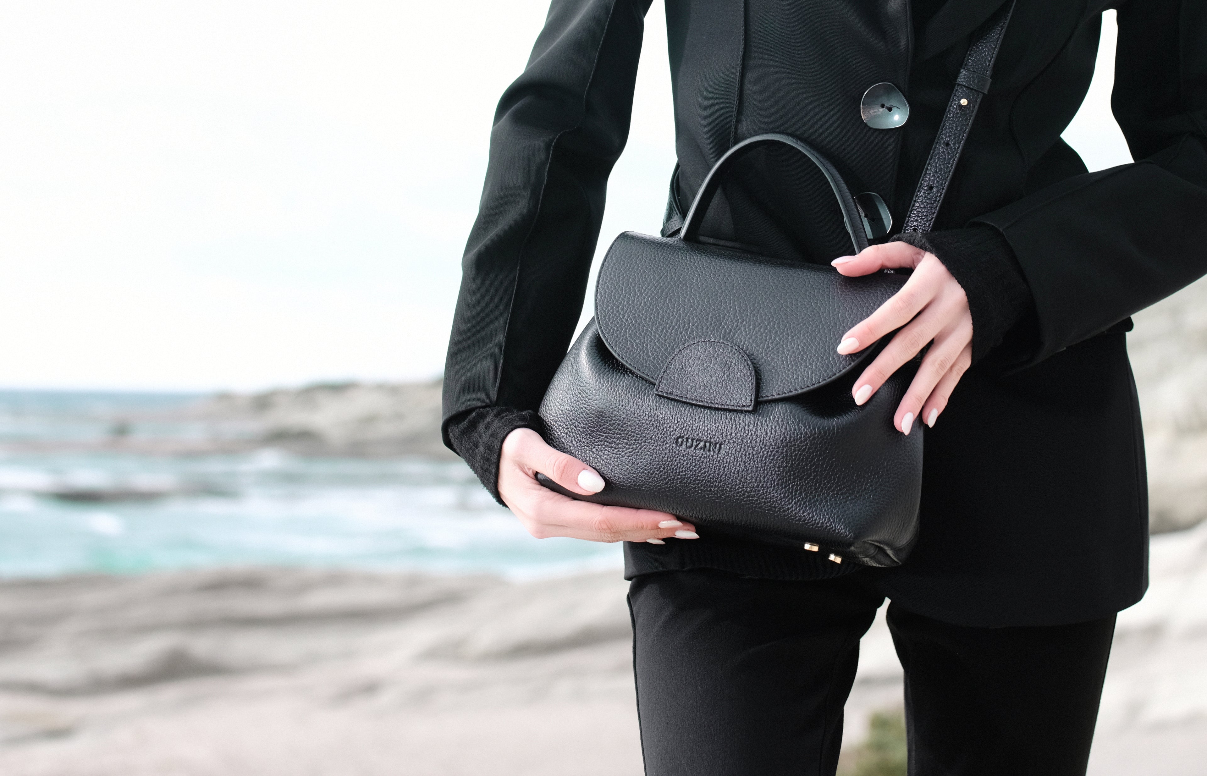 Genuine Full Grain Leather Handbag | Top Handle & Detachable Long Strap | Premium Hardware & Alcantara Lining